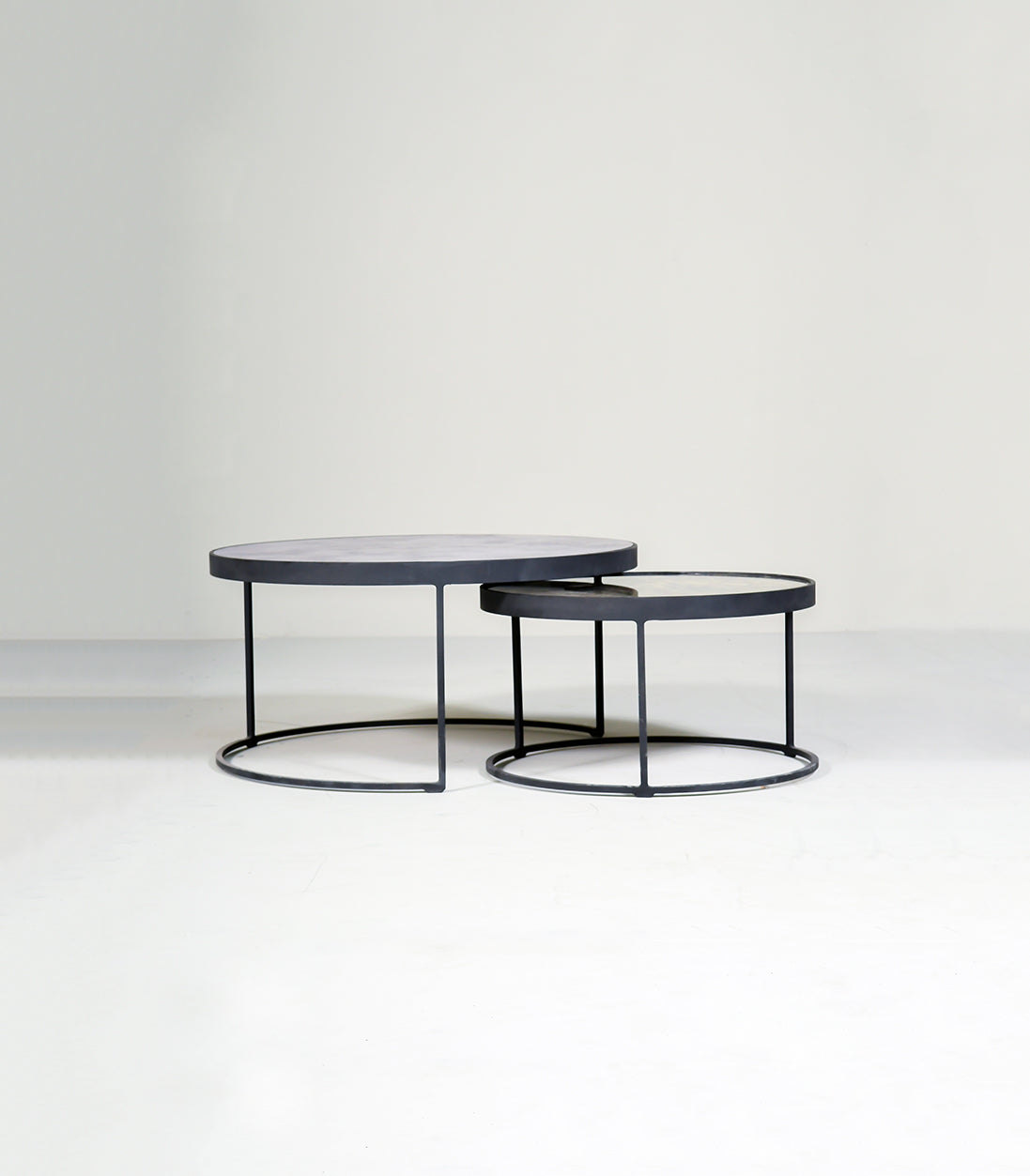 Structured and sleek, slim iron frames introduce a modern edge to the refined elegance of polished white marble. Designed with a nesting feature for compact, functional versatility, these tables offer adaptable use while maintaining a contemporary, sophisticated presence in any interior.