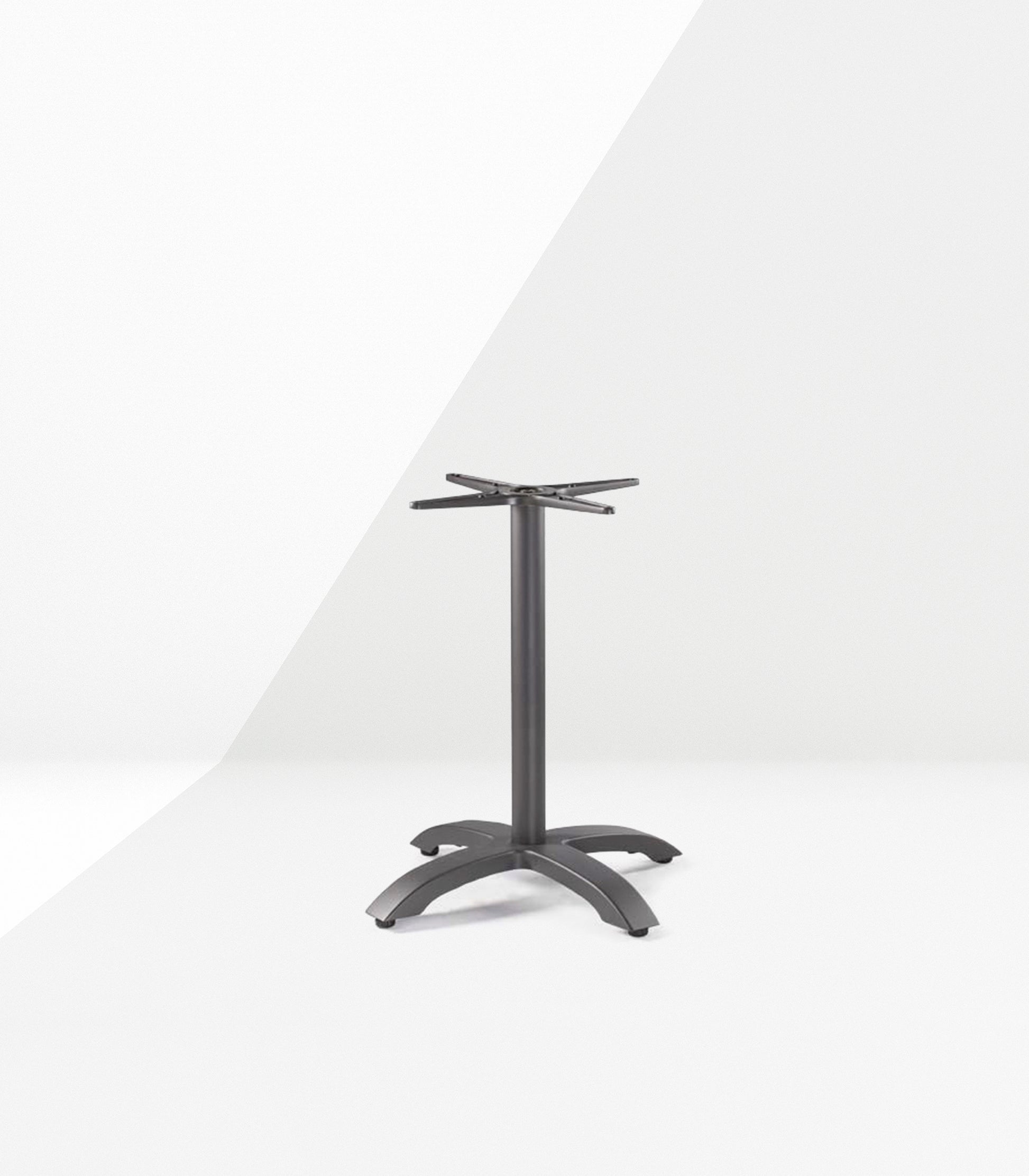 This base features a cast-iron foundation with an aluminum column and adjustable feet for added stability. Designed with a four-legged structure and finished in anthracite, it is robust and versatile, making it ideal for classic or contemporary settings, indoors or outdoors, and pairs perfectly with HPL or solid wood tabletops.