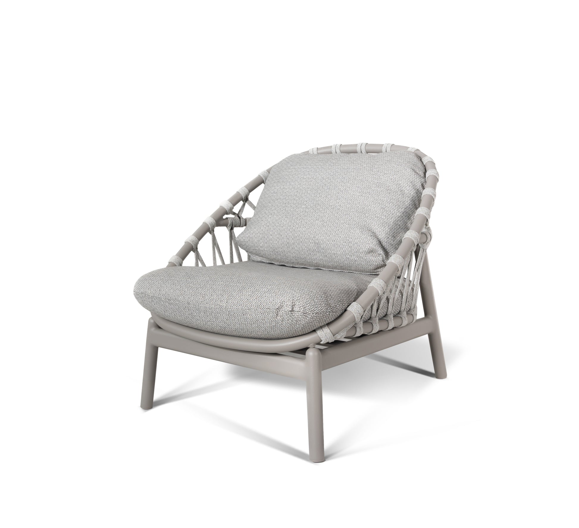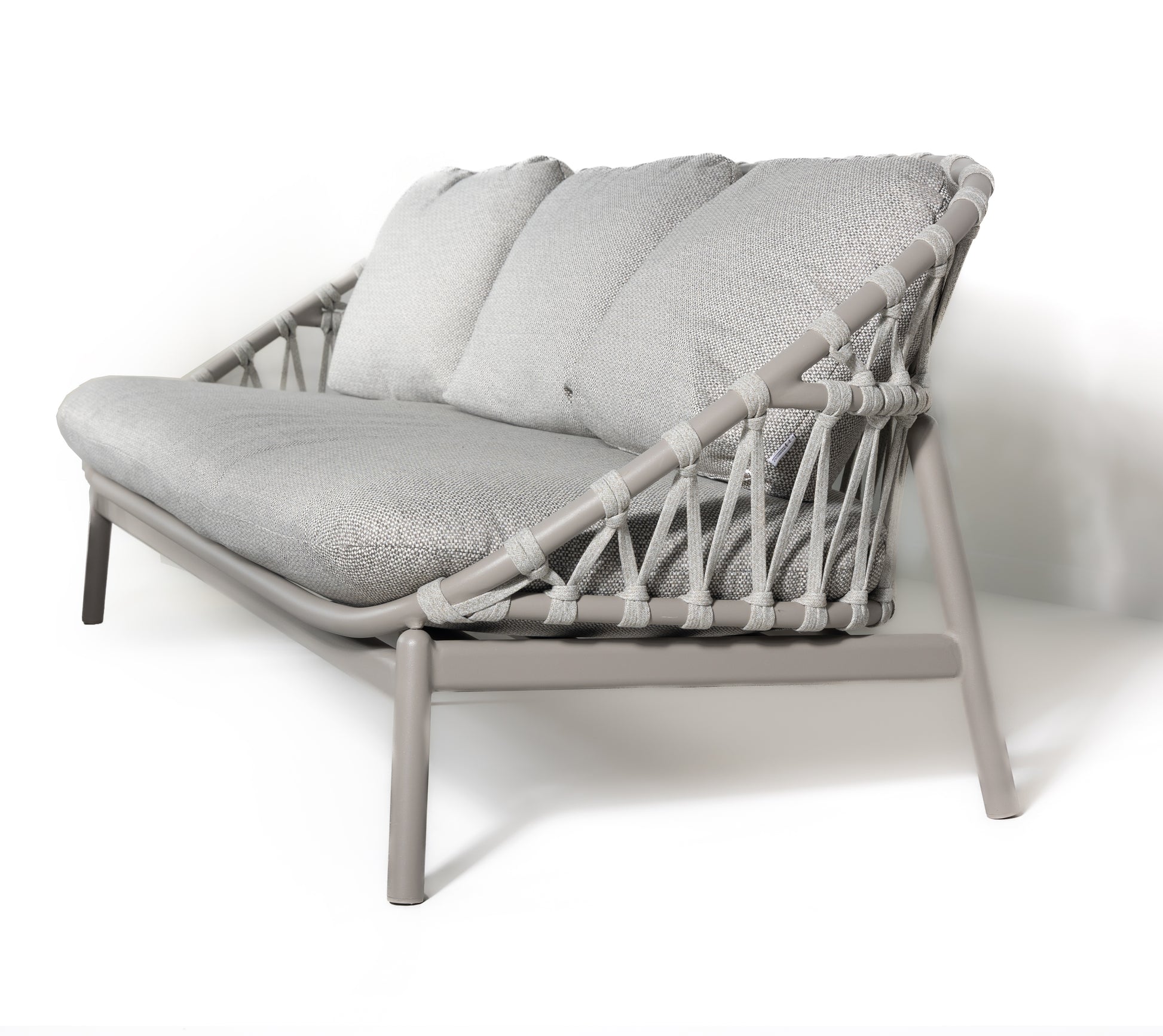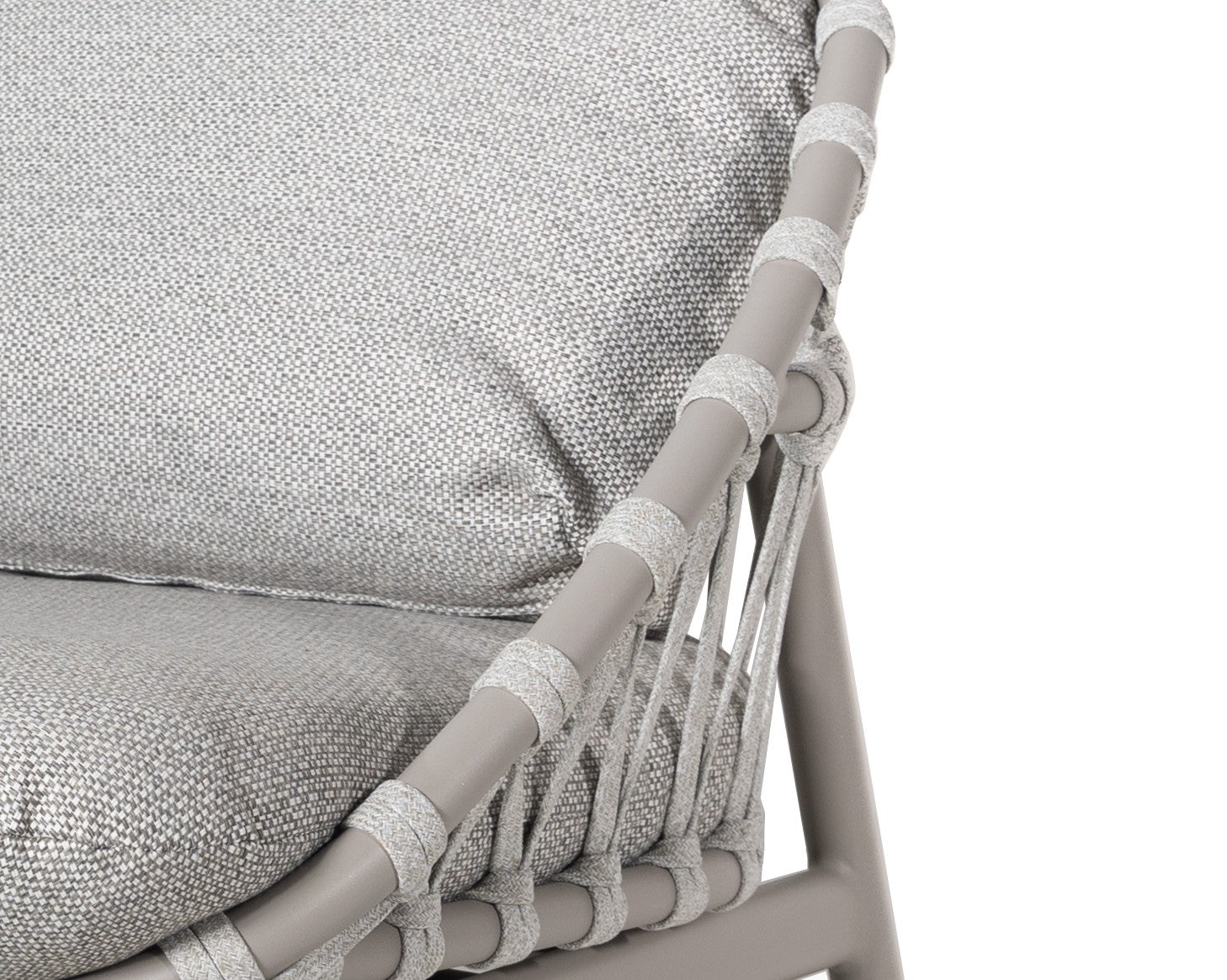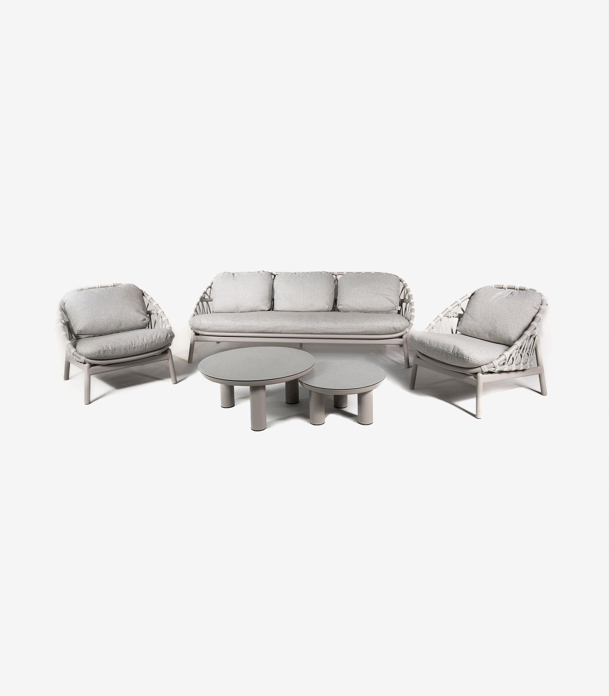 The Dezza set combines refined comfort with effortless elegance, comprising a three-seater sofa, two armchairs, and a coordinating coffee table. Crafted from lightweight, weather-resistant aluminum in either taupe or anthracite finishes, it offers lasting durability with minimal maintenance. All-weather cushions upholstered in Olefin performance fabric provide resistance to UV rays, mold, mildew, fading, and water, making the Dezza set an ideal choice for chic, timeless outdoor living.
