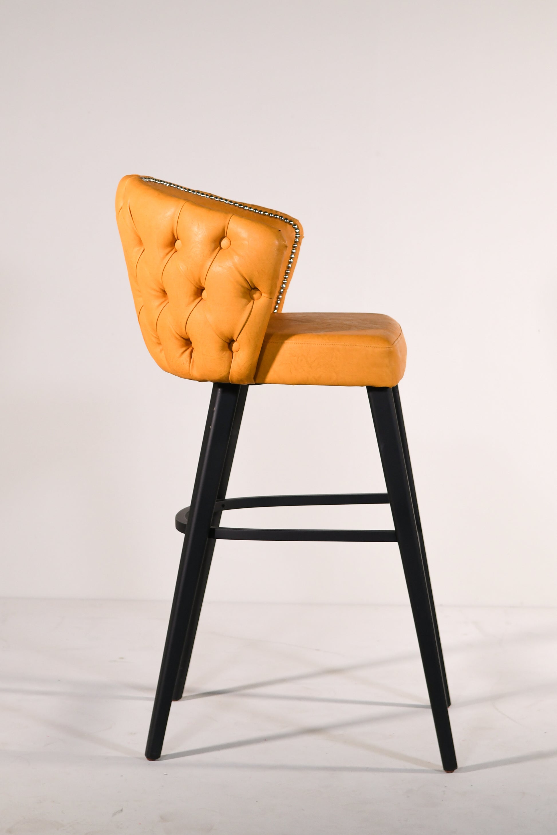 This Hugo stool features a button-tufted upholstered back, evoking timeless Chesterfield-inspired elegance. It perfectly elevates any bar setting, and brings sophistication and style to every space.