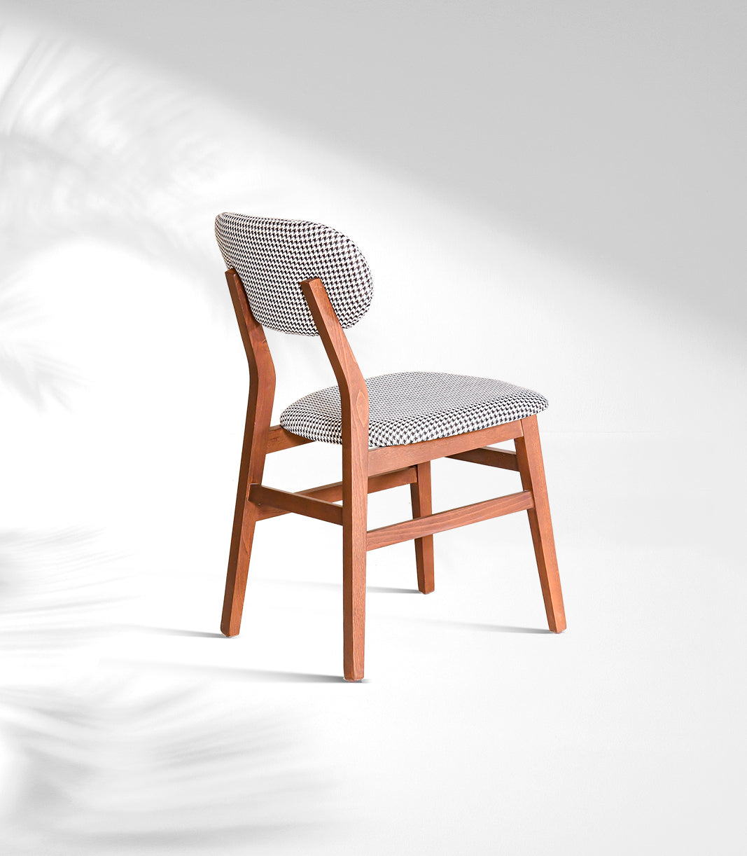 A timeless blend of classic and contemporary design, this dining chair is crafted from solid beech wood and is offered in a curated selection of customisable fabrics and wood finishes. Its versatile aesthetic makes it ideal for modern kitchens, elegant dining spaces, or sophisticated restaurant settings, combining durability, comfort, and refined style.