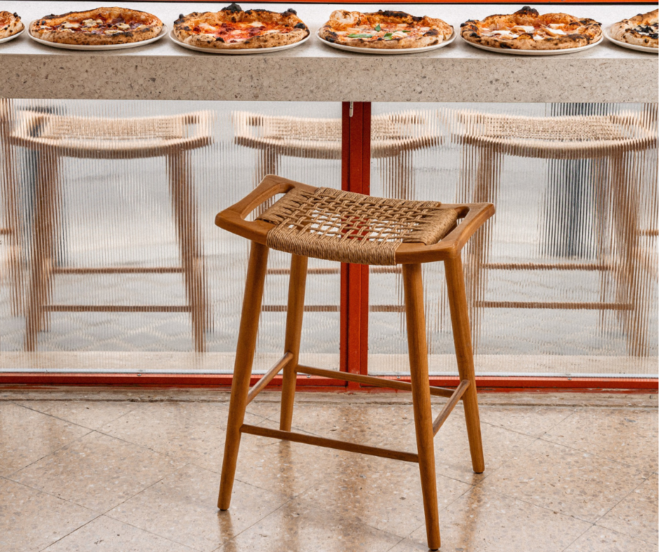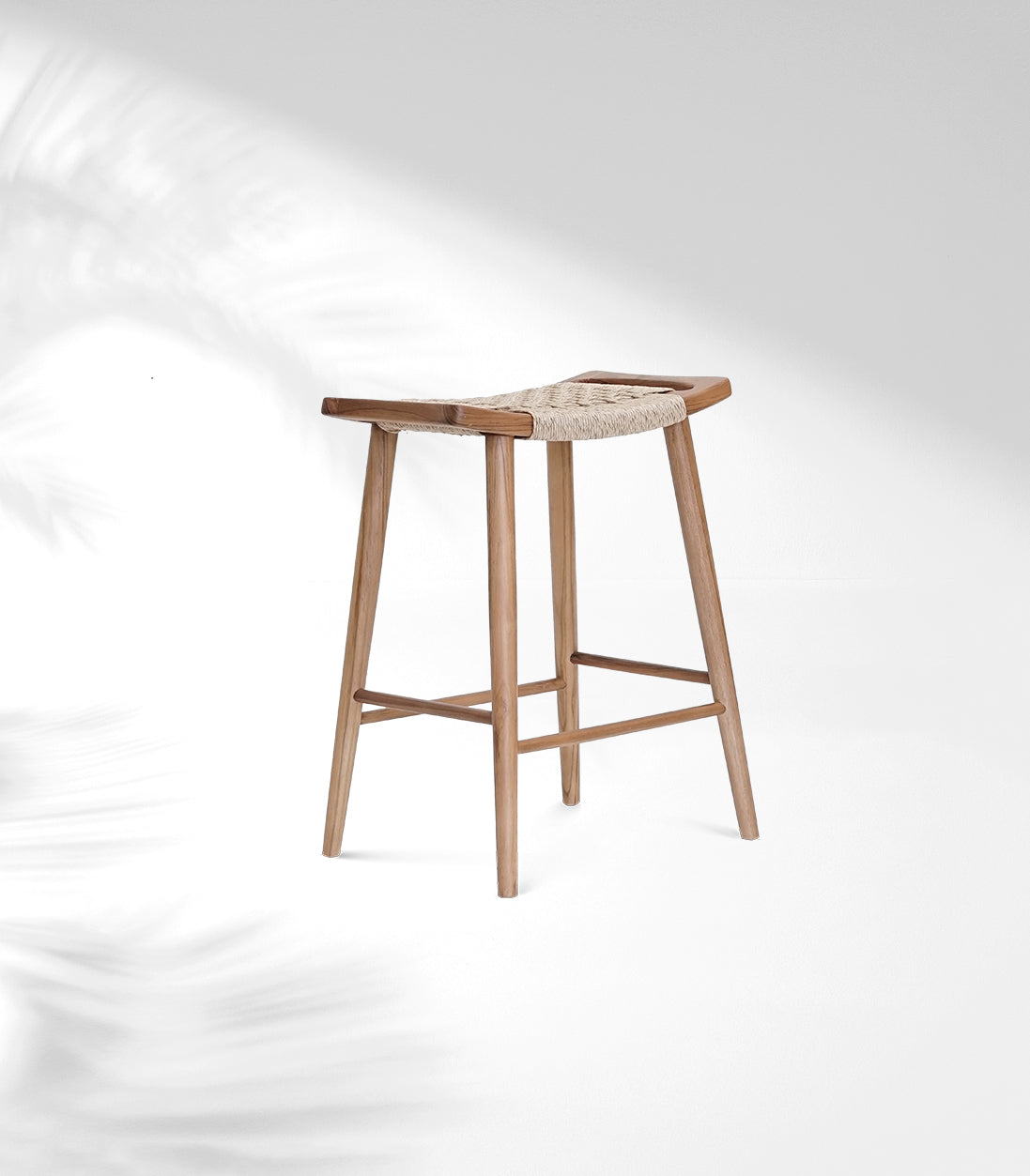 Crafted from solid teak wood with a synthetic straw seat and a natural finish, this lightweight stool is both practical and versatile. Its warm tones and natural aesthetic make it ideal for indoor or outdoor settings.