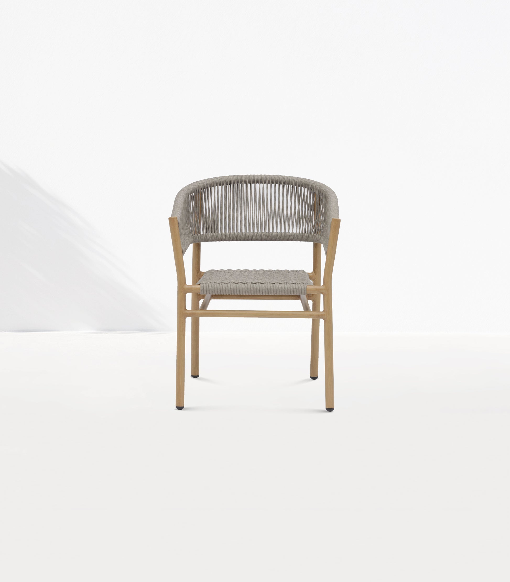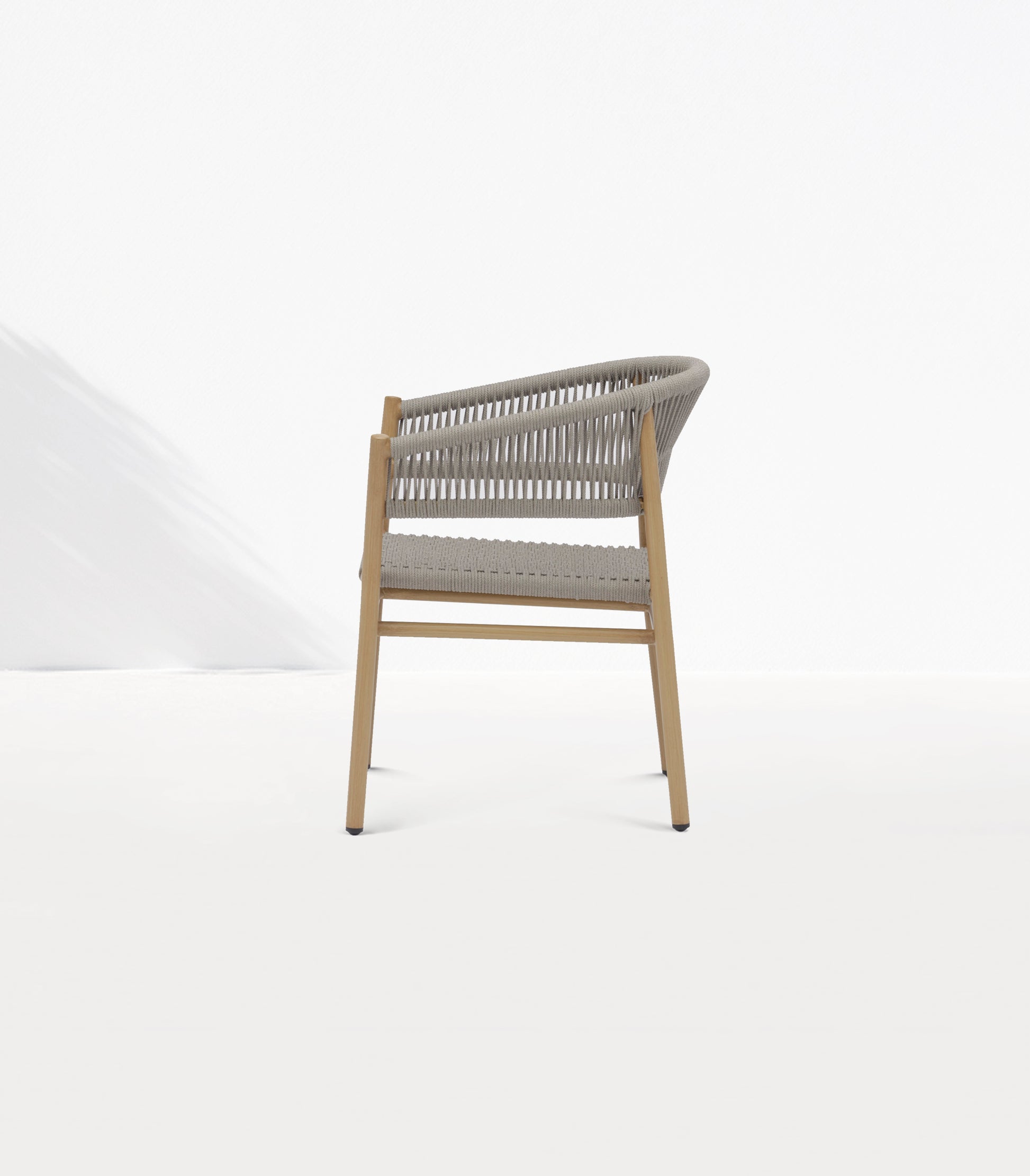 This lightweight yet robust aluminium armchair features elegant grey rope detailing on the backrest and an intricately woven rope seat for lasting comfort and durability. Stackable and versatile, it’s perfect for both residential and commercial outdoor spaces, blending effortless style with practical functionality.
