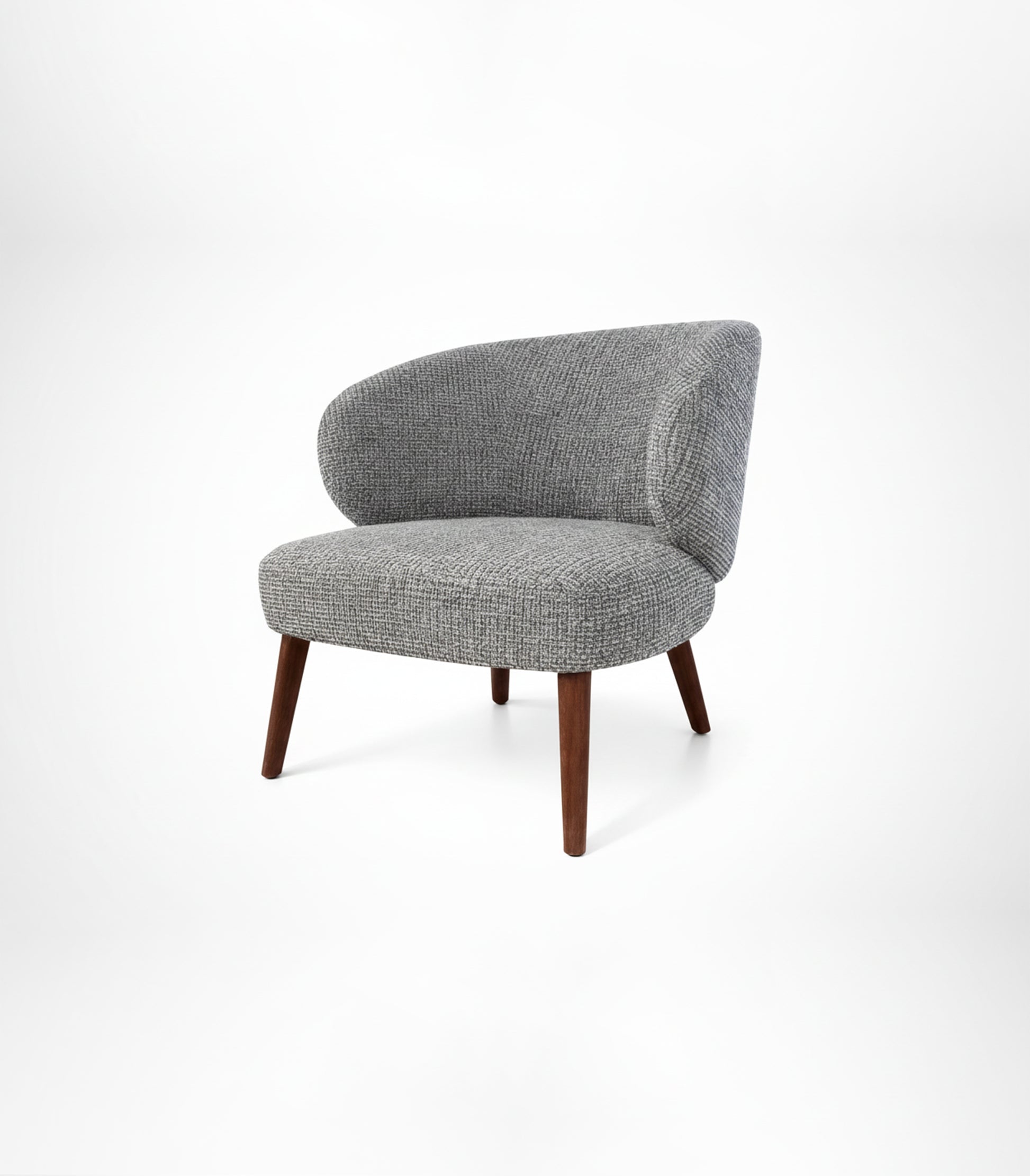 The Nelia lounge chair, with its contoured back, invites effortless relaxation. Fully customizable in a wide selection of fabrics and wood finishes, it is the ideal addition to elevate any indoor setting.