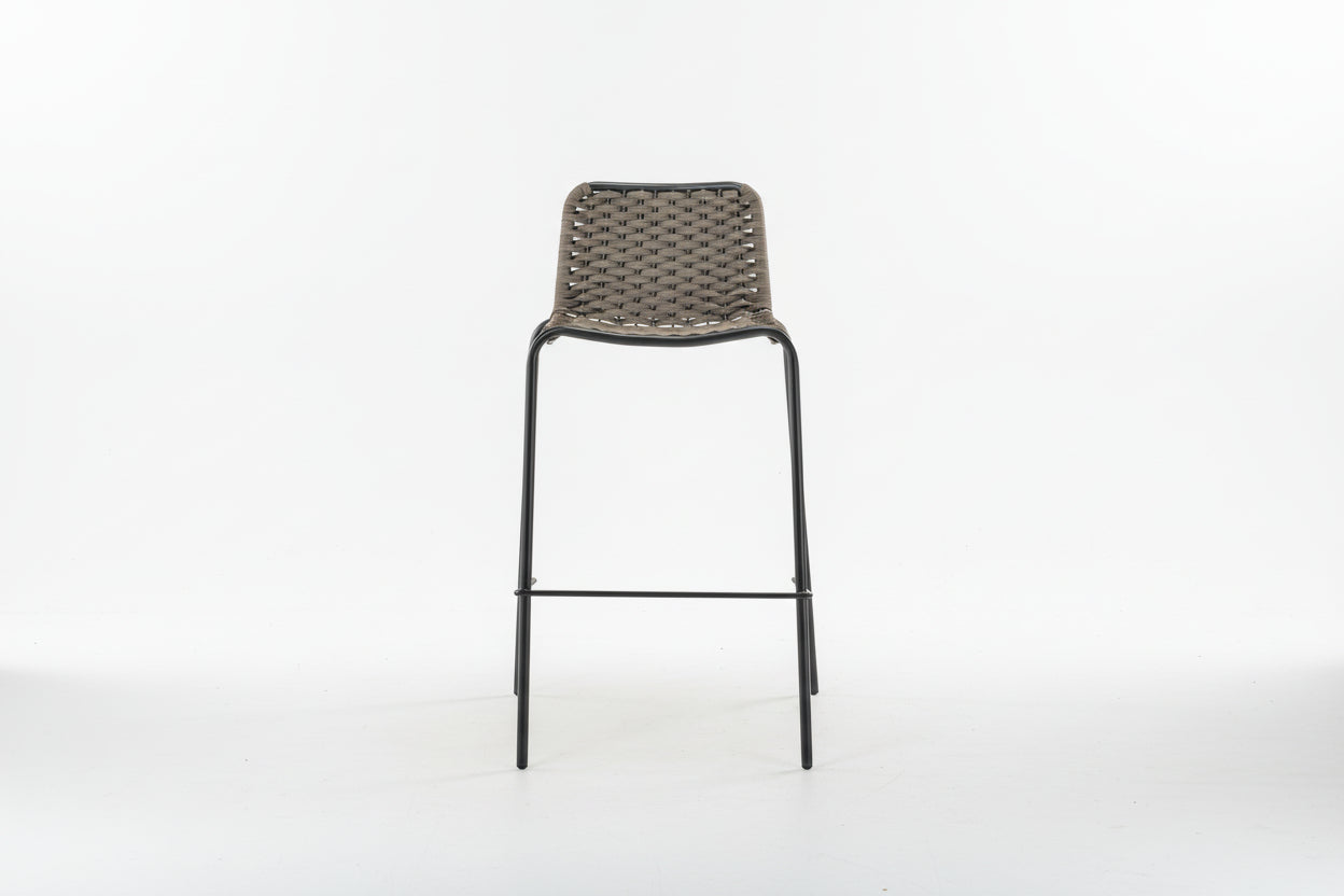 This sleek steel stool features a powder-coated steel frame with an intricate rope-woven pattern. Weatherproof, UV-resistant, and stackable, it combines modern design with lasting durability, perfect for any commercial outdoor setting.