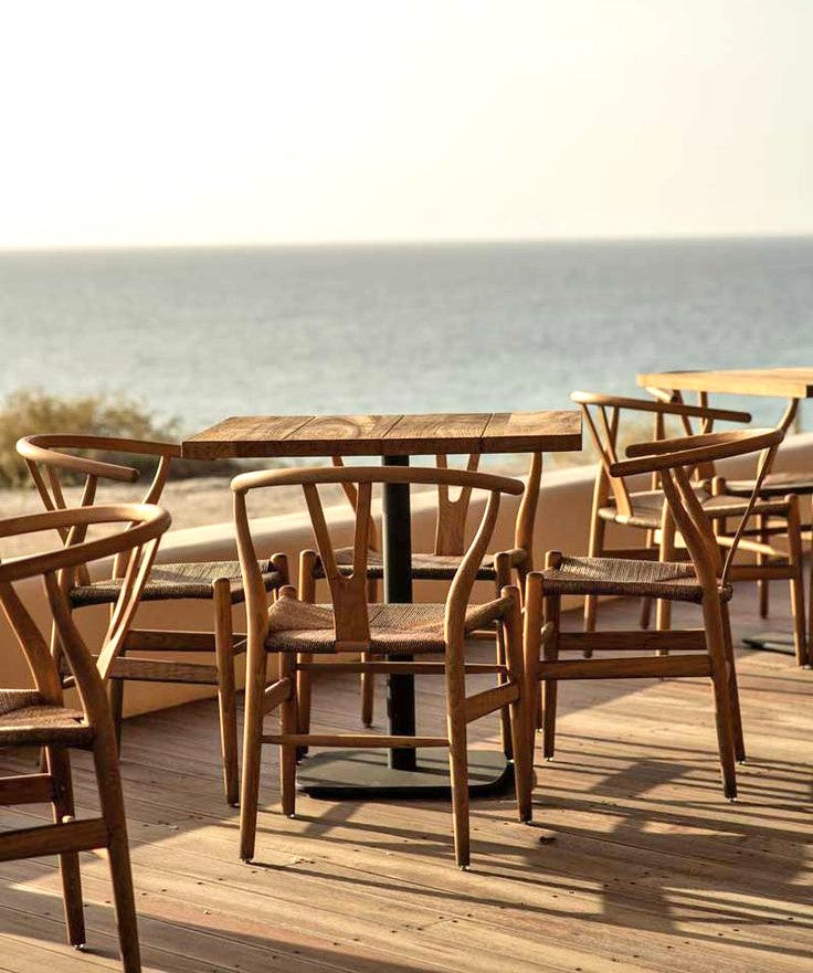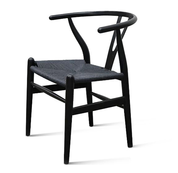 The Wishbone armchair features a solid ash wood frame with a natural straw seat. Lightweight yet durable, its timeless design complements both contemporary and classic dining settings and is available in a range of customizable paint finishes.