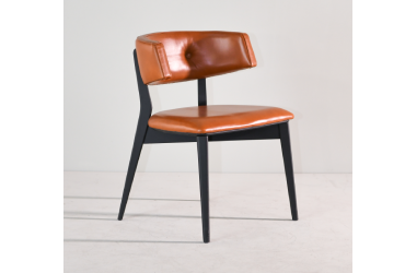 An upholstered seat and back in leatherette fabric for a sophisticated look. The solid wood frame and legs contrast the upholstery creating a chic mid-century design. Comes in any textile and wood finish. DOWNLOAD BROCHURE VARIATIONS MONYAY MONYAY MONYAY